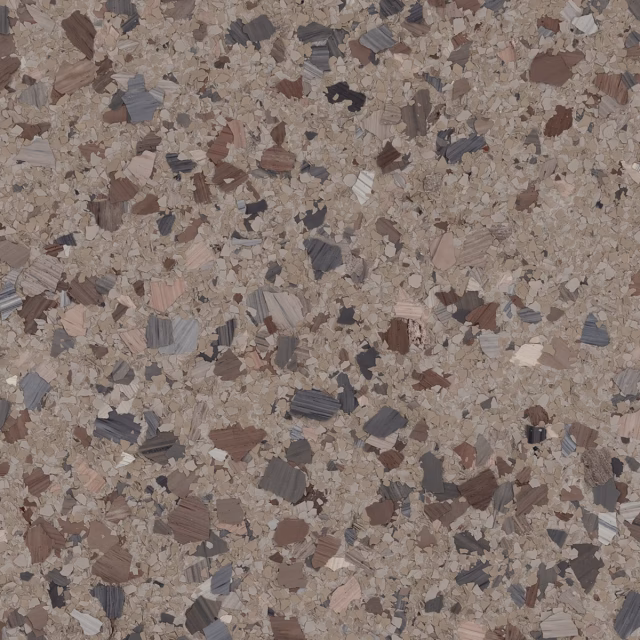 Armadillo (FB-4216) es una encantadora mezcla de terrazo, cuidadosamente seleccionada para ofrecer una opción de suelo sutil y neutral. Con una base marrón, esta mezcla presenta elegantes acentos marrones y grises, creando una apariencia armoniosa y sofisticada inspirada en la naturaleza resistente del armadillo. Como todas las mezclas de terrazo, Armadillo exhibe la maestría de combinar escamas de diferentes tamaños, lo que da como resultado una apariencia similar a la del agregado que aporta profundidad y carácter, similar a los suelos de terrazo tradicionales.