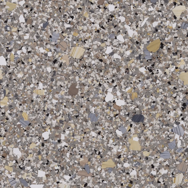 Travertino (FB-4103) es una cautivadora mezcla de la colección Stone de Torginol, cuidadosamente seleccionada para ofrecer una opción de suelo neutral y elegante. Inspirada en el encanto clásico del travertino, esta mezcla presenta una armoniosa combinación de acentos marrones, negros, grises, blancos y amarillos, que evocan la belleza atemporal de las superficies de piedra pulida. Como todas las mezclas de la colección Stone, Travertino utiliza combinaciones de escamas de tamaño híbrido, creando una apariencia similar a la de un agregado que emula la sofisticación de la piedra auténtica.