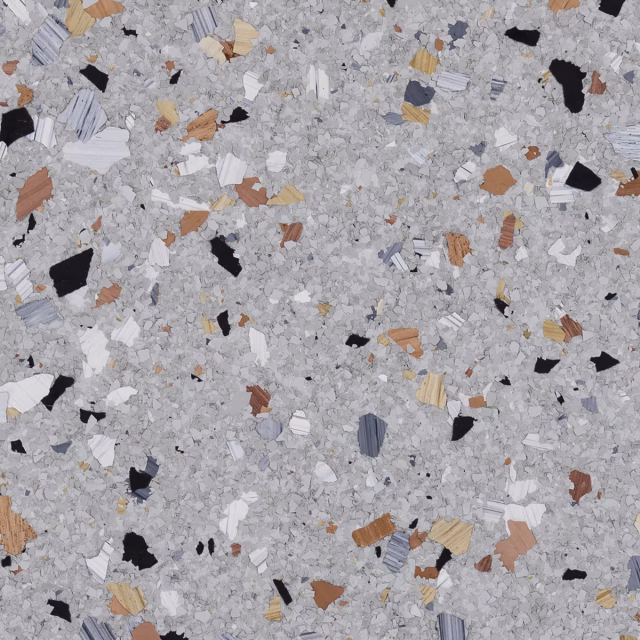 Denali (FB-4214) es una cautivadora mezcla de terrazo, cuidadosamente seleccionada para ofrecer una opción de suelo oscuro y neutro. Con una base gris oscuro, esta elegante mezcla presenta elegantes acentos de gris, marrón y negro, creando una apariencia armoniosa y sofisticada inspirada en la majestuosa belleza del Denali, el pico más alto de Norteamérica. Como todas las mezclas de terrazo, FB-4214 Denali demuestra la maestría de combinar escamas de diferentes tamaños, lo que da como resultado una apariencia similar a la de un agregado que aporta profundidad y carácter, similar a los suelos de terrazo tradicionales.